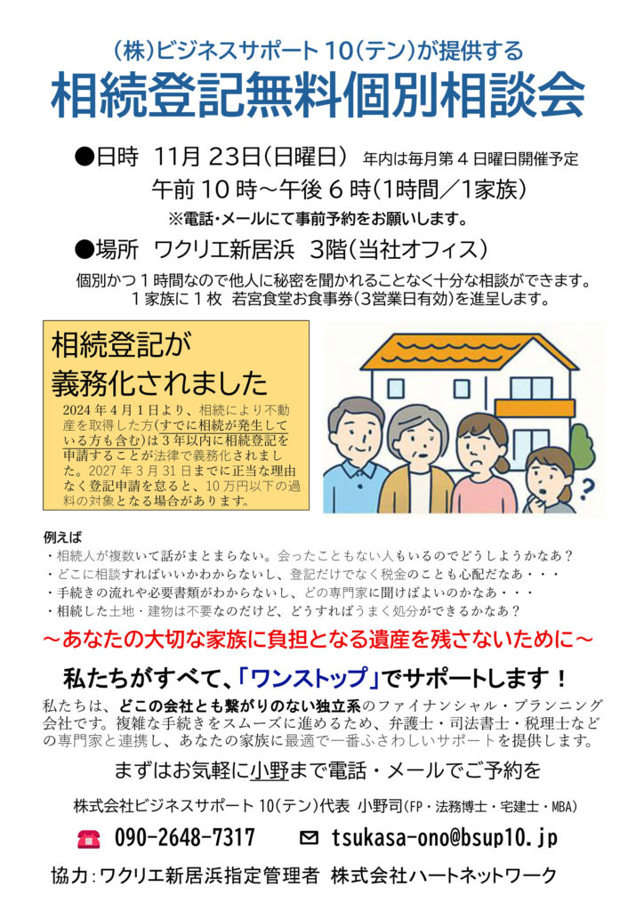 (株)ビジネスサポート10(テン)が提供する 相続登記無料個別相談会