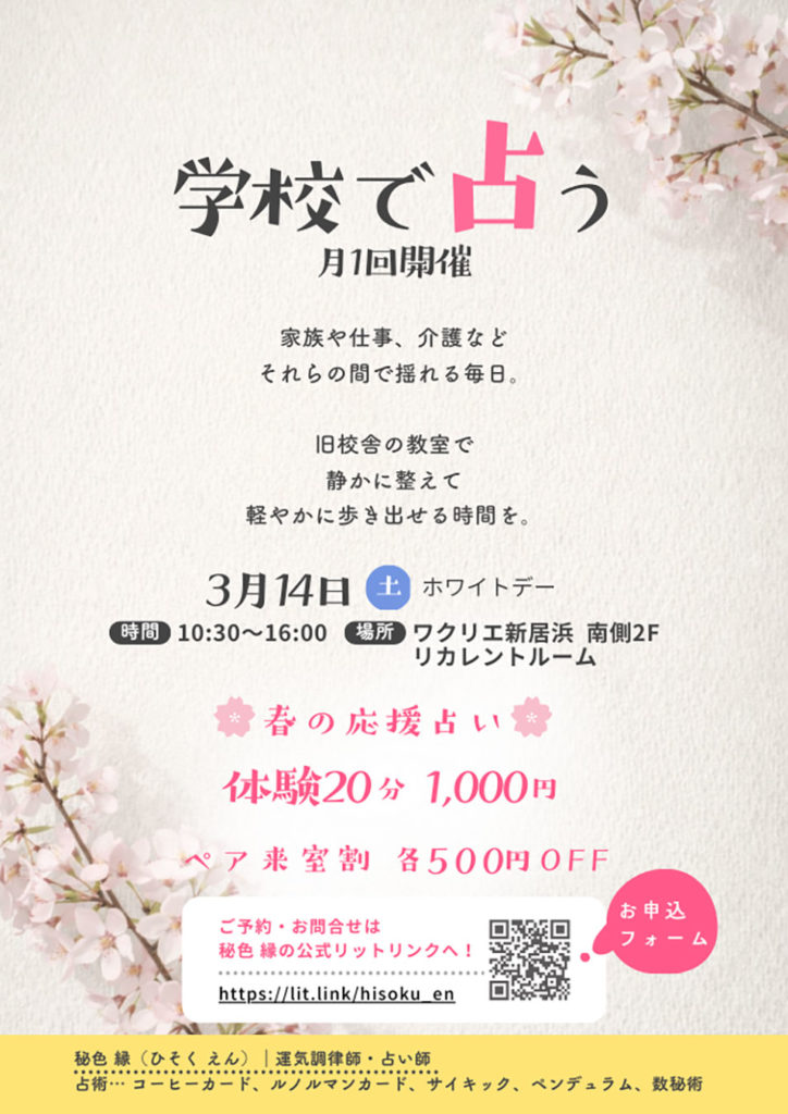 ※秘色 縁公式リットリンク https://lit.link/hisoku_enの「学校で占う」からもお申込みいただけます。