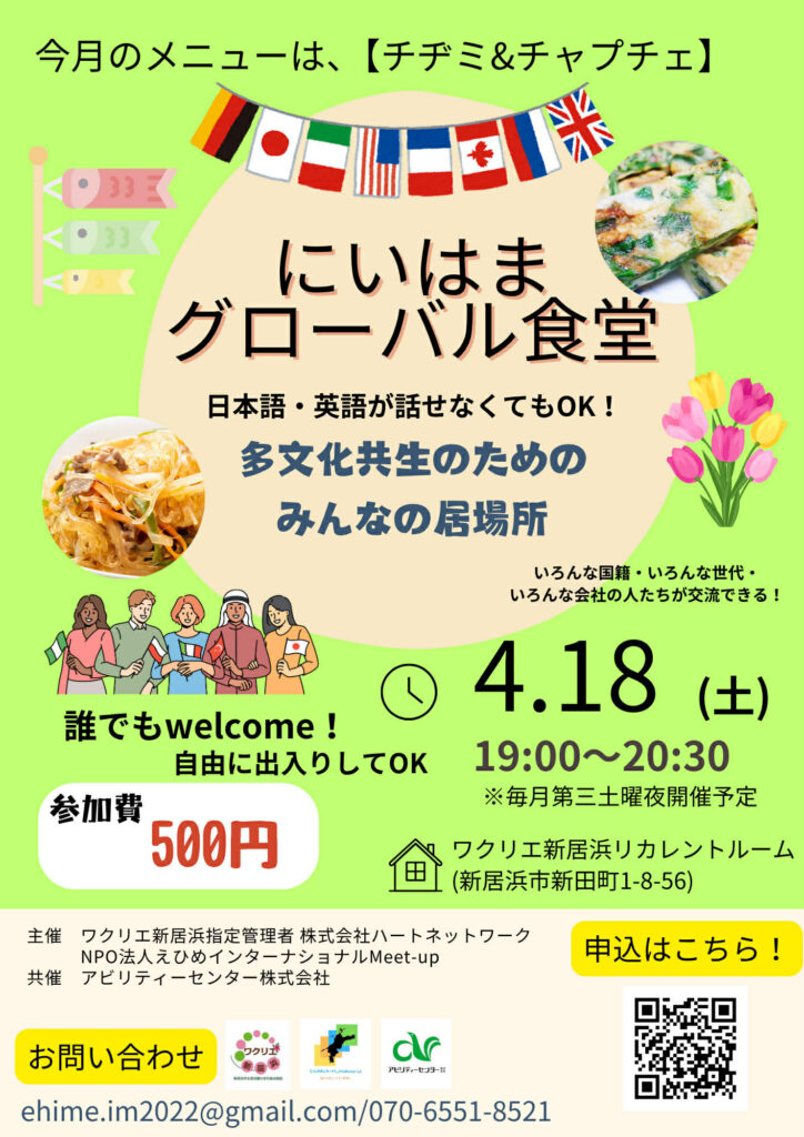 4/18(土)19:00~20:30 にいはまグローバル食堂